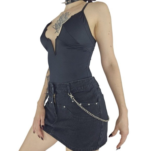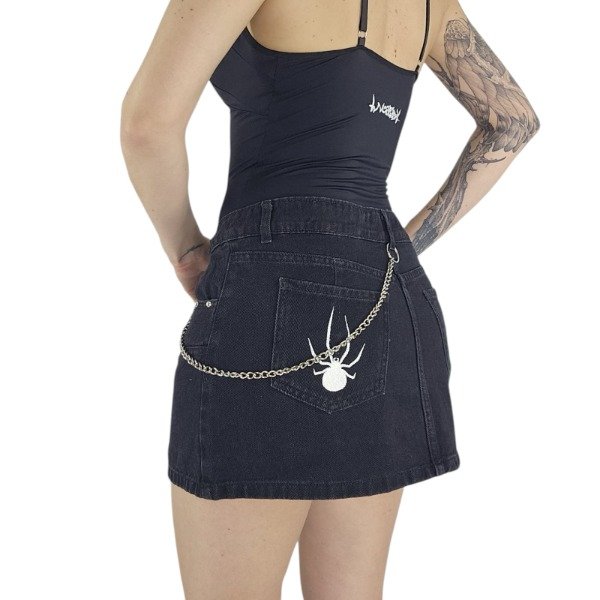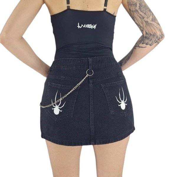 Mini de Denim con apliques de tachas y bordados